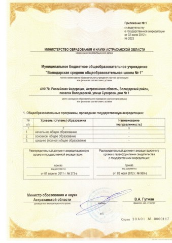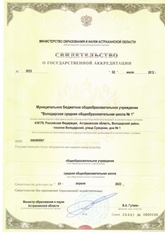 "ВОЛОДАРСКАЯ СРЕДНЯЯ ОБЩЕОБРАЗОВАТЕЛЬНАЯ ШКОЛА №1"