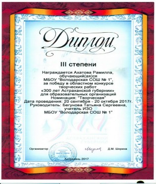Победители областного конкурса творческих работ " 300 лет Астраханской губернии." Руководитель: учитель ИЗО Бегунова Т.С. Поздравляем ребят с победой в конкурсе!