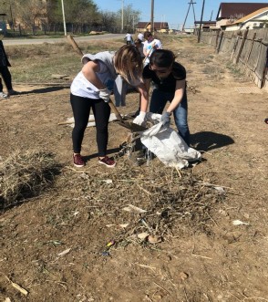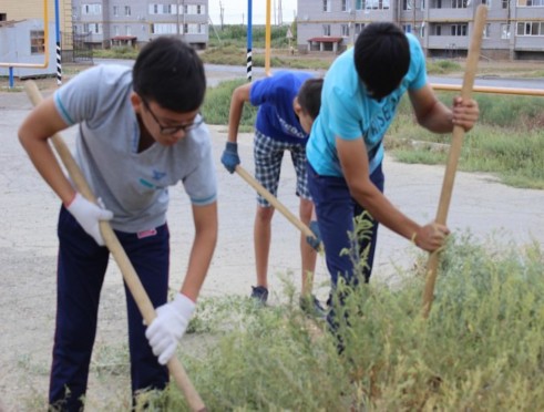 В конце августа учащиеся 10"А" (кл.руководитель Кударова А.Т.), 10"Б"( кл.руководитель Ишмухамбетова Х.Р.), 11 класса (кл.руководитель Ситалиева Ж. Г.) под руководством учителя технологии Казанбаева Б.Т. приняли участие в волонтёрском движении по уборке территории для строительства храма в пос. Володарский.