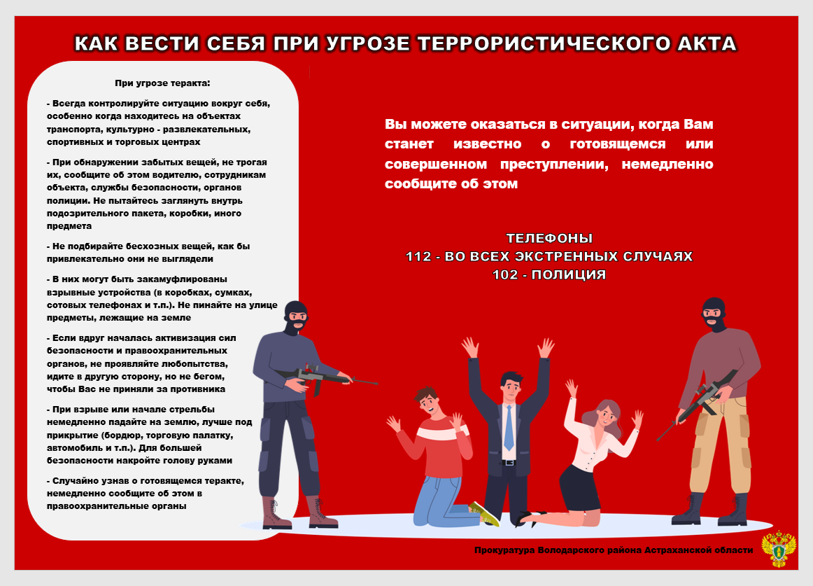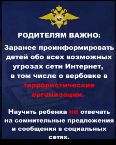 В Астраханской области участились случаи рассылки сообщений в мессенджерах и социальных сетях с призывами к совершению террористических актов в торговых центрах и других местах с массовым пребыванием людей. Важно помнить, что привлечением кандидатов на противоправные действия занимаются подготовленные, специально обученные люди. Они разбираются в психологии, свободно владеют технологиями манипуляций, могут использовать также технику нейролингвистического программирования (НЛП) или лёгкого гипноза. Вербовщики внимательно изучают аккаунты в соцсетях, посты, комментариии, найдя подходящую будущую жертву, вступают с ней в диалог. Легко определив слабые стороны собеседника, вербовщик начинает вызывать доверие, с ним хочется продолжить общение. По этой причине часто жертвами вербовки становятся те, кто ещё плохо ориентирован в жизни – подростки и молодёжь, переживающие какие-то проблемы в межличностных отношениях, в семье, и ищущие смысл жизни и поддержку в Интернете. Родители могут заметить, что с подростком что-то не так – у него меняются интересы, он начинает говорить о других вещах, становится замкнутым, много времени проводит в Интернете и так далее. Как обезопасить себя и своих близких: · Разрешите в соцсетях доступ к записям, фотографиям только для друзей. · Не добавляйте незнакомых людей в друзья. · Не откровенничайте в общедоступных пабликах, чатах, форумах. · Будьте бдительны, если незнакомец проявляет к вам настойчивый интерес, · комментирует, ставит лайки. · Не соглашайтесь на "привлекательные" предложения подзаработать. · Перепроверяйте информацию, поступающую с незнакомых аккаунтов. · Сохраняйте осознанность. В этой связи родителям необходимо быть бдительными, провести беседы с детьми и разъяснить несовершеннолетним опасность общения с незнакомыми людьми в сети Интернет и как реагировать на поступающие сообщения с призывами к противоправным действиям. Законным представителям обязательно обращать внимание на поведение и новые интересы ребенка, в особенности, на выполнение им заданий, полученных в социальных сетях (так называемые челленджи), поддерживать контакты с друзьями и одноклассниками несовершеннолетнего, их родителями. О каждом известном факте склонения ребенка к совершению террористического акта незамедлительно сообщать в правоохранительные органы! Кроме звонка по телефону 102 при получении рассылки с призывами к терроризму следует: · зафиксировать переписку и идентификаторы, · предоставить информацию в правоохранительные органы, · заблокировать аккаунт и пожаловаться на него за спам и терроризм. За призыв к совершению террористических актов предусмотрена уголовная ответственность. Публичные призывы к осуществлению террористической деятельности, в том числе совершенные в сети Интернет, наказываются лишением свободы на срок от двух до семи лет (статья 205.2 УК РФ). За совершение террористического акта предусмотрена уголовная ответственность в виде лишения свободы от десяти лет вплоть до пожизненного лишения свободы (статья 205 УК РФ). За содействие террористической деятельности (склонение, вербовку или иное вовлечение лица в совершение преступления), вооружение или подготовку лица в целях совершения террористического акта предусмотрено наказание в виде лишения свободы от семи до п
