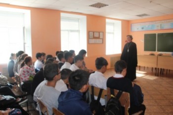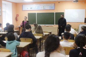 26 сентября состоялась встреча учащихся 9-11 классов с представителем церкви диаконом Алексеем Одинцовым. Со вступительной речью выступила психолог школы Кайдалова Л.А., которая обозначила тему встречи: "Межнациональные и межконфессиональные отношения". Выступающие еще раз рассказали о необходимости мирного сосуществования людей различных национальных и религиозных конфессий и познакомили с историей формирования национального состава населения России.