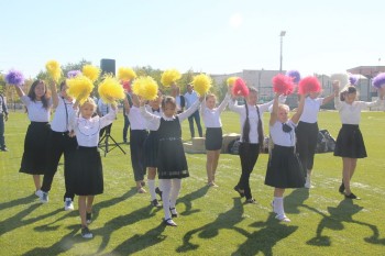 6 сентября на стадионе спорткомплекса "Олимп" состоялась официальная передача спортивного инвентаря и оборудования в нашу школу по программе "Футбол в школу". Открыли праздничное мероприятие учащиеся нашей школы с вокально-танцевальным номером "Широка страна моя родная".