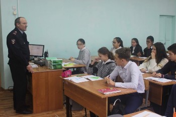 В сентябре инспектор ОПДН по Володарскому району Аренов И.К. провел профилактическую беседу на правовую тематику с учащимися 6-х классов. Школьникам напомнили о необходимости правильно вести себя в общественных местах и соблюдать дисциплину и порядок в школе.