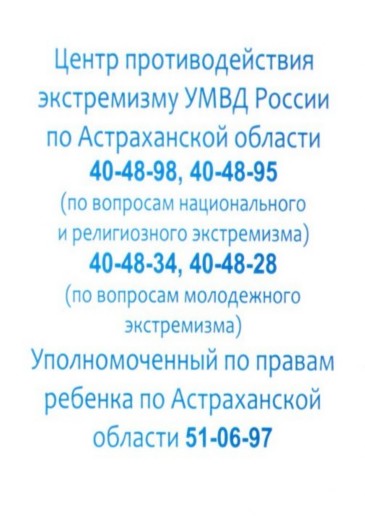 Профилактика экстремизмаУважаемые родители! На официальном сайте этноконфессионого совета при Губернаторе Астраханской области действует "горячая линия" для обращений граждан по вопросам негативных явлений в этноконфессиональной сфере http://etnokonf.astrobl.ru/
