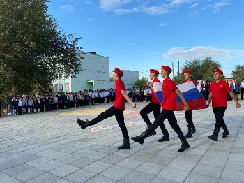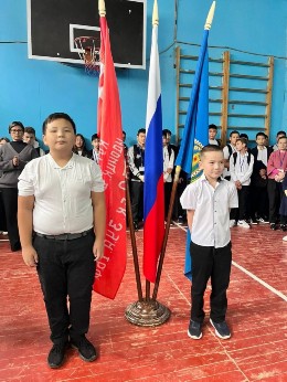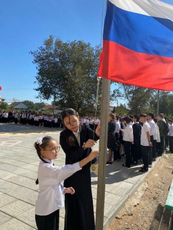 Вторая учебная четверть в нашей школе началась с торжественной линейки, посвященной церемонии поднятия Государственного флага Российской Федерации. Право поднять Государственный флаг Российской Федерации было предоставлено лучшим учащимся школы: ученице 10 класса Мухамеджановой Нелли, ученице 2 «Б» класса Постниковой Кире, ученице 6 «В» класса Абдушевой Самире и ученице 3 « В» класса Таженовой Саиде.