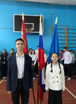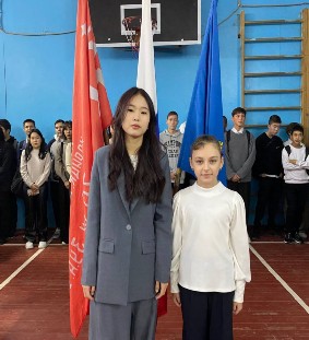 Традиционно утро понедельника в нашей школе началось с поднятия государственного флага Российской Федерации и исполнении гимна. Право поднять государственный флаг Российской Федерации предоставилось следующим обучающимся нашей школы: ученику 9 «А» класса Мурзагалиеву Абаю,ученикам 2 «В» класса Ерекешеву Нурали и Ирбатыровой Ханифе,ученику 8 «Б» класса Сапахову Ильясу и ученице 3 «А» класса Горелышевой Варваре. После торжественной церемонии во всех классах школы прошли занятия внеурочного курса «Разговоры о важном» на тему « Дорогами России».