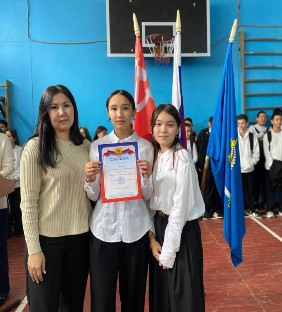Среди победителей есть и наши ученицы - Мухамеджанова Нелли и Хусаинова Асель, которым заместитель прокурора района Исламов Вахид Вахаевич и заместитель главы по оперативной работе Тимур Джумартов вручили награды.