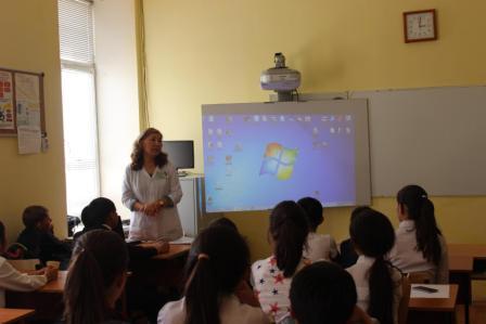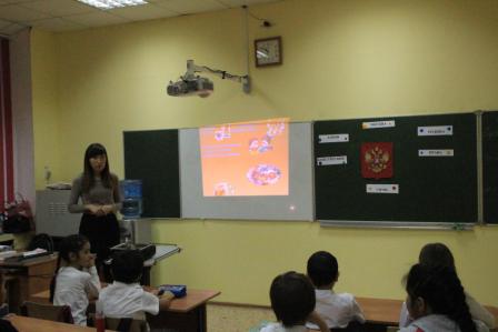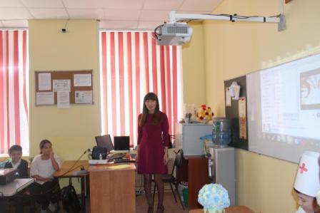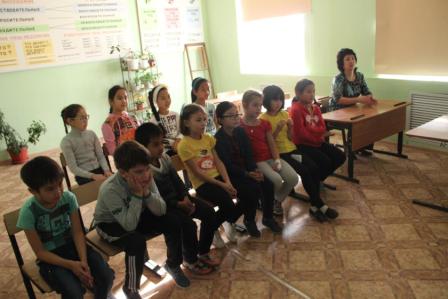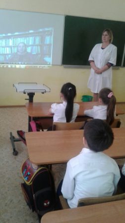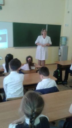 Медсестра школы Аксенова Т.С. проводит с детьми беседы о здоровом образе жизни.
