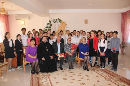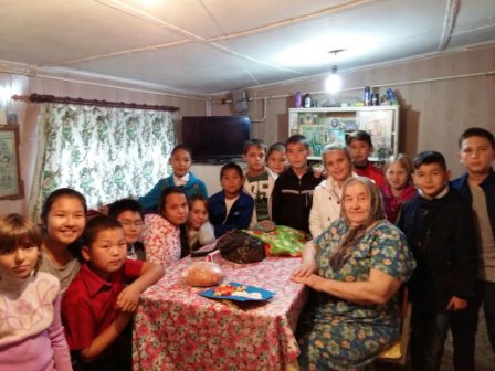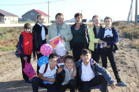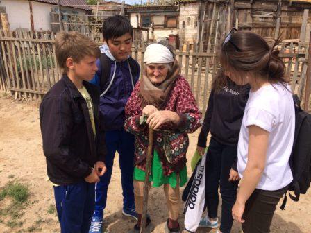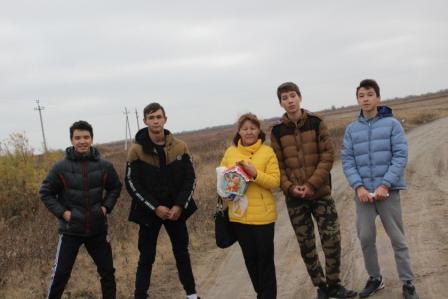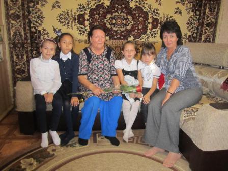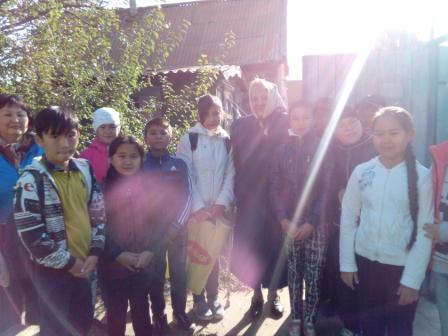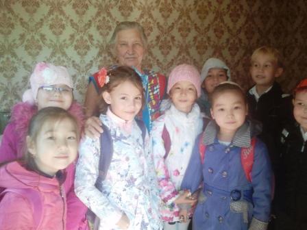 Ученики 5 "А" класса вместе с классным руководителем Калимбетовой Ф.С. навестили труженицу тыла Обидину Тамару Ивановну.