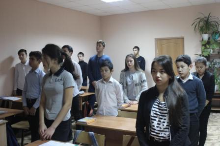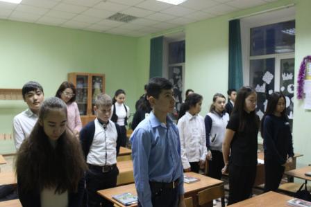 6.04.2017 ученики нашей школы почтили минутой молчания погибших в террористическом акте в г.Санкт-Петербурге и погибших сотрудников ДПС г. Астрахани.