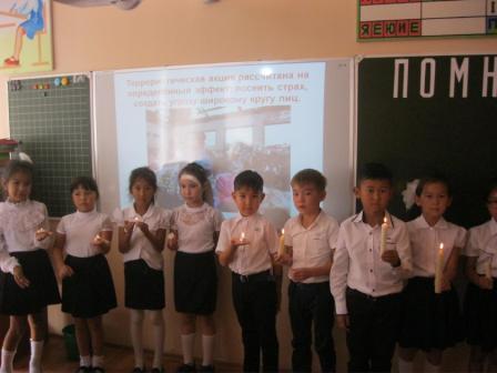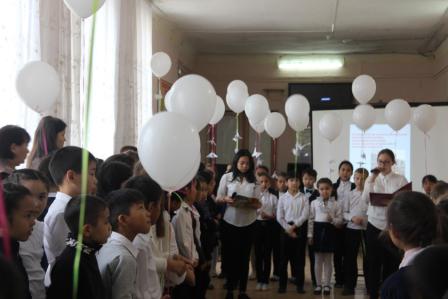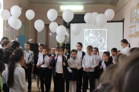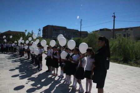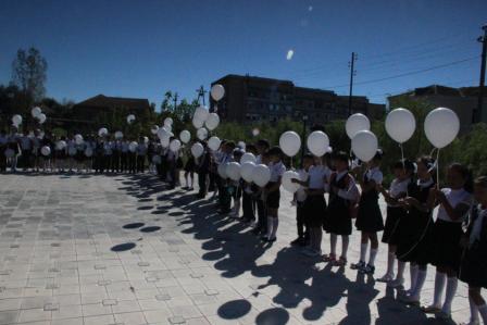 3 сентября в районном Парке Победы прошло мероприятие, посвященное памяти жертвам террористических атак. Присутствовали учащиеся 3 "а" , 3 "б" , 3 "в" классов под руководством классного руководителя Калимбетовой Г.Ю. и воспитателя ГПД Шинбековой А.С. Дети выпустили в небо белые шары и журавлики.