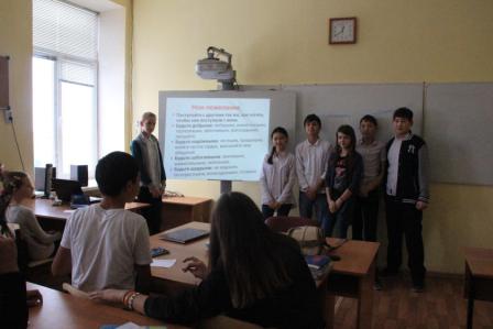 14 апреля учащиеся 8-11 классов совместно со своими классными руководителями побывали в районном центре культуры на профориентационном мероприятии. Ребят ознакомили с правилами приема и формой обучения в ВУЗах и СУЗах г. Астрахани и области.