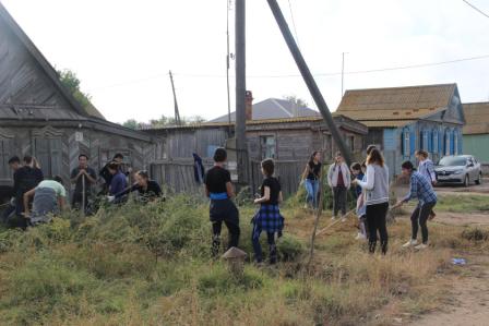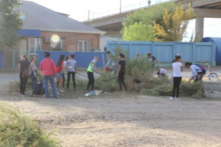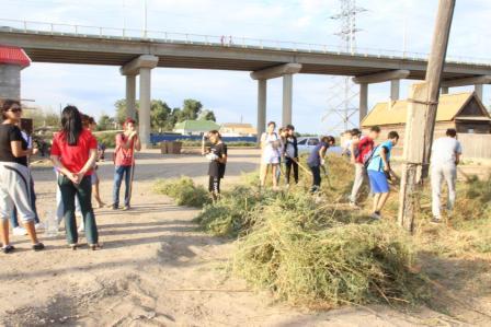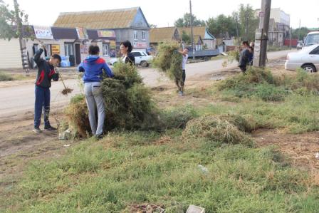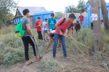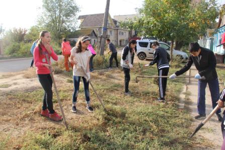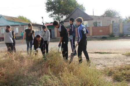 9 сентября учащиеся 8, 9, 11 классов со своими классными руководителями и учителями физкультуры вышли на прополку травы по улице Маяковского.