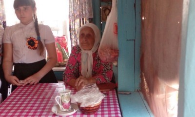 Учащиеся 8 "А" класса (классный руководитель Кадыржанова А.В.) навестили труженицу тыла Шевцову Веру Николаевну.