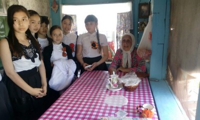 8 мая учащиеся 9 "А" класса вместе классным руководителем Кударовой А.Т. навестили вдову участника войны и труженицу тыла Миндиеву Александру Васильевну.