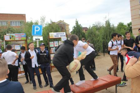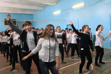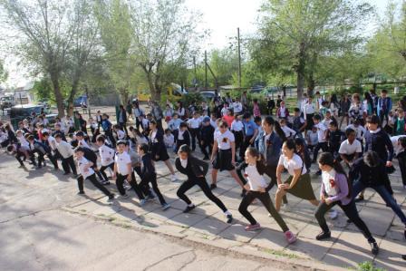 В рамках регионального марафона "Здоровая Губерния" в школе проходят танцевально-спортиные перемены "Делай как мы, делай вместе с нами, делай лучше нас! " Учащиеся 9 "А" класса (классный руководитель Кударова А.Т.) подготовили флеш-моб под лозунгом "Здоровье на первом месте". Учащиеся 9 "Б" класса(классный руководитель Ишмухамбетова Х.Р.) продемонстрировали на переменах приемы спортивной борьбы по самбо.