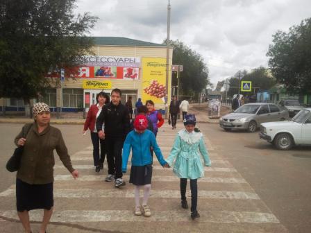 Учащиеся 2 "Б" класса( классный руководитель Кайдалова Л.А.) и МК класса ( классный руководитель Уаисова В.М.) на экскурсии на пешеходных переходах