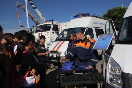22 сентября учащиеся 8 "А" и 8 "Б" классов вместе со своими классными руководителями Кадыржановой А.В. и Ильжановой С.Н. побывали на уникальной выставке пожарной техники, которая была представлена в парке Астраханского театра оперы и балета. Выставка новейших и раритетных образцов спасательной техники МЧС России проходила в рамках международных комплексных учений «Каспий 2016».Экспонаты были привезены со всей России. Ребята смогли увидеть как раритетные образцы, например, конно-бочечный ход( находился на вооружении профессиональной пожарной охраны с 1804 г.) так и уникальные современные экспонаты (например, пожарные мотоциклы быстрого реагирования МБР-2) Эта экскурсия прошла в рамках совместной профориентационной работы школы и Федерального Государственного Казённого Учреждения "3 отряд Государственной Противопожарной Службы" по Астраханской области.