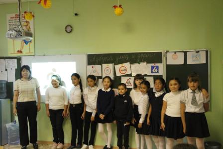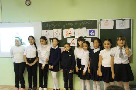 Месячник безопасности жизнедеятельности обучающихся .В 3 "А" классе классный руководитель Калимбетова Г.Ю. подготовила мероприятие "Театр дорожных знаков" с приглашением инспектора ОГБДД по Володарскому району Федотова В.В. На празднике присутствовали учащиеся 4 "А" класса.