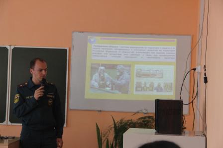 10 октября для учащихся 10, 11 классов и педагогов школы прошёл Урок Гражданской Обороны,который провёл заместитель начальника отряда Федеральной Противопожарной Службы Погожев А.В.