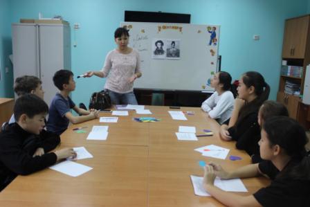 31 октября учащиеся 11 и 9 "Б" классов под руководством классного руководителя Ишмухамбетовой Хаернисы Рафилевны и старшей вожатой Мурзагалиевой Эльмиры Абдрахмановны побывали в районной библиотеке на патриотическом мероприятии, посвящённом дню рождения комсомола.
