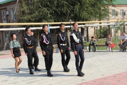 5 мая учащиеся - юнармейцы школы под руководством учителя ОБЖ Ерекешева Р.А. приняли участие в районном конкурсе " Знаменных групп и Почетного караула"