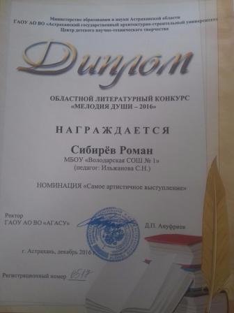 14 июня в Резиденции губернатора Астраханской области состоялось торжественное вручение паспортов юным гражданам России. Среди учащихся области, получивших паспорт от Жилкина А.А. был ученик 8 «Б» класса МБОУ «Володарская СОШ №1» ( классный руководитель Ильжанова С.Н.) Кузнецов Кирилл. Этой высокой чести Кирилл удостоился за хорошие успехи в учёбе, высокие результаты в спорте и активную жизненную позицию.